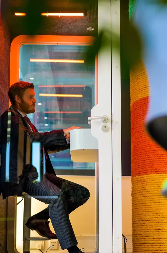 Fully equipped meeting rooms and phone booths for calls and team collaboration