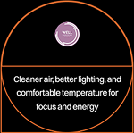 Optimised lighting, temperature, and air quality aligned with WELL standards for healthier, more comfortable workdays, with certification underway (completion expected by February).